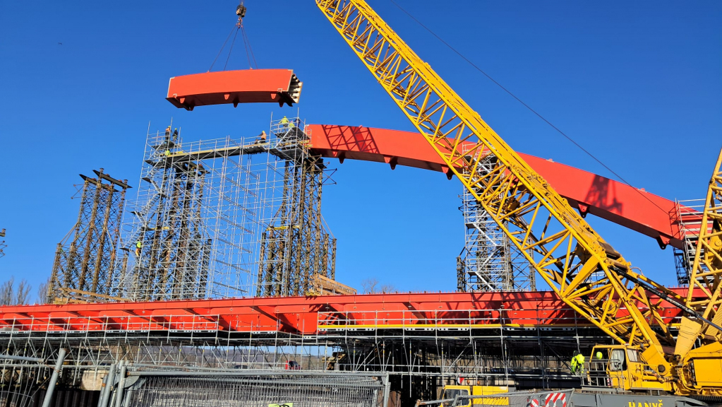 During the construction of the motorway bridge over the Morava River near Napajedla, a LIEBHERR LG 1550 crane was deployed.