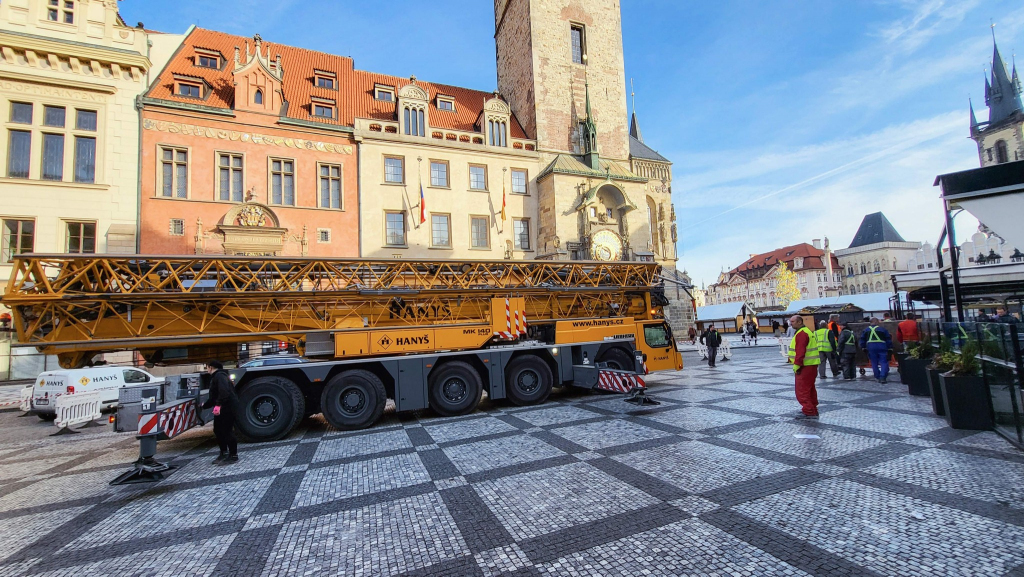 By the Prague Astronomical Clock at the Old Town Square, our LIEBHERR MK 140 mobile tower crane was in action. This technology offers exceptional capabilities in places where a static crane with extensive preparations would otherwise be required.