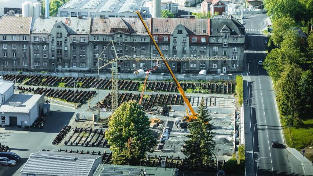 In Děčín, we took part in the assembly of a tower crane. For this operation, a mobile crane was deployed to handle the installation of the jib and the upper section of the tower crane.