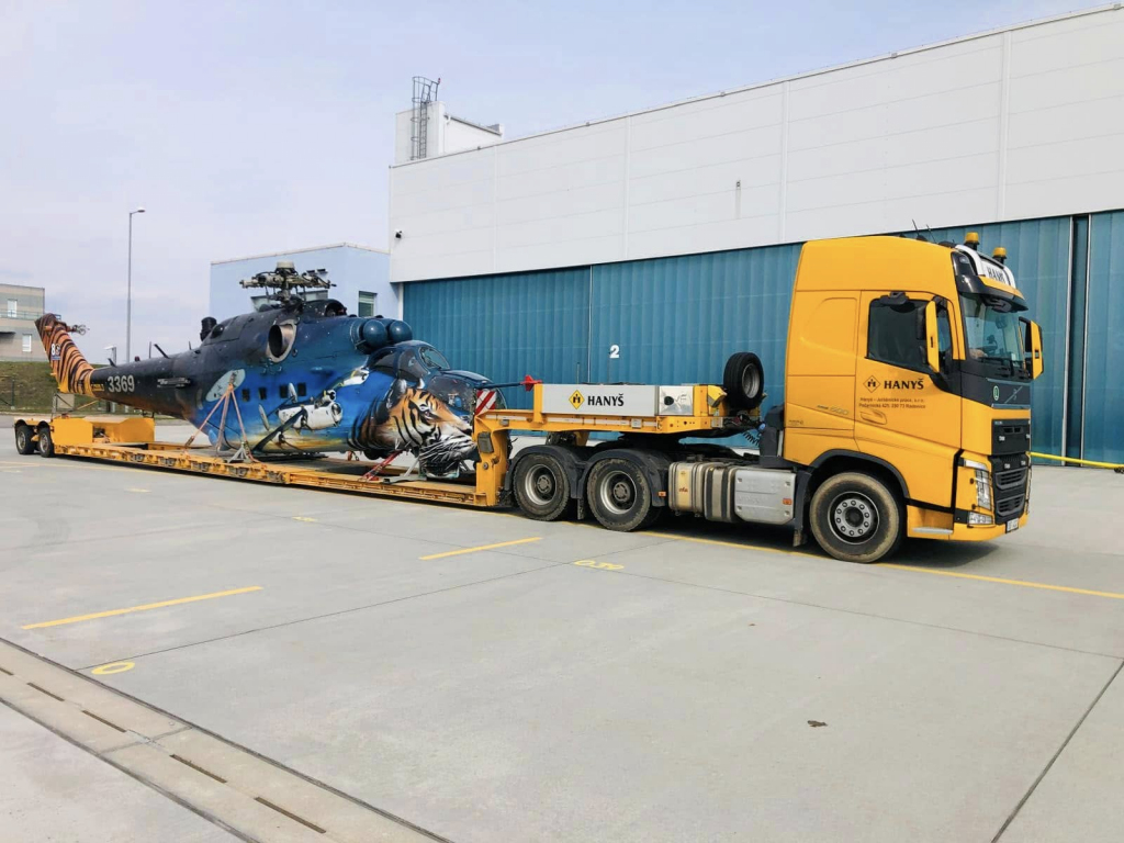 Zajišťovali jsme přepravu vojenského vrtulníku Mi-24V/35, který putoval na speciální soupravě o rozměrech 26,5 × 2,5 × 4,8 m (délka × šířka × výška) a celkové hmotnosti 40 tun.