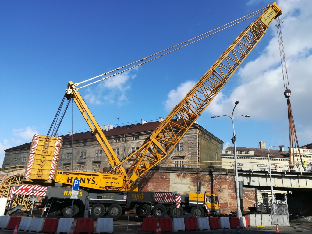 Crane LG 1550 dismantled the old steel bridge, which is part of famous construction in Praque- Negerelli´s viaduct.